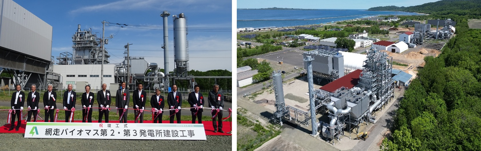 株式会社東京エネシス(以下「当社」)を含む6社が出資する、合同会社網走バイオマス第2発電所および合同会社網走バイオマス第3発電所(2社あわせて以下「SPC2社」)は、6月12日に、昨年10月に営業運転を開始した網走バイオマス発電所2号機(以下「2号機」)、ならびに今年3月に営業運転を開始した同3号機(以下「3号機」、また2機をあわせて「本発電所」)の竣工式を開催しました。