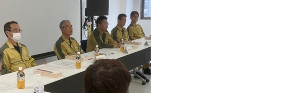 現場パトロール後、事務所内で社員との意見交換を行い、眞島社長は、日頃の安全作業に対する社員への労いの言葉と「現場の安全確保は小さな事の積み重ねが重要」との感想を述べました。参加者からは、時間外労働の取り組みについて質問があり、「今年度は時間外労働の法規制前ラストチャンスであり、この課題に対してあらゆる検討やチャレンジをしてもらいたい。その知見・成果が来年度からの実施に反映される」として、上限規制適用を見据えた取り組みについての考えを示しました。