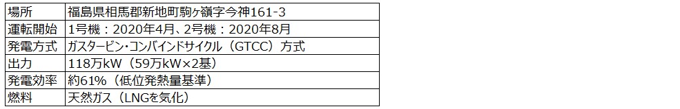 【参考】福島ガス発電株式会社様福島天然ガス発電所概要